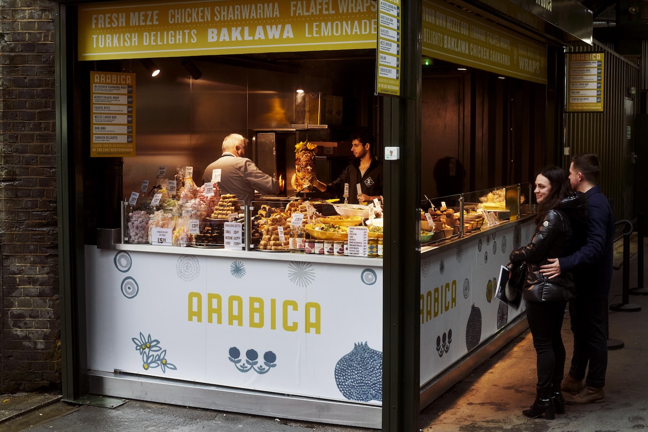 Over 20 years ago, James and Jad set up at Borough Market with little more than a cool box, an 8-foot trestle table and a passion for Middle Eastern food. Staying true to our market roots, we’re still slinging sizzling chicken shawarma, crisp halloumi fries and fluffy falafel wraps packed with crunchy pickles, fresh salad and velvety tahini sauce from our stall, right next to Arabica Borough Market restaurant.